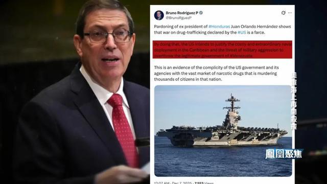 12日,古巴外长罗德里格斯在社交媒体发文表示,美国所谓的“禁毒战争”不过就是场闹剧,无非是为在加勒比海地区耗费巨资部署海军寻找借口,并制造军事侵略威胁,意图推翻委内瑞拉合法政府。